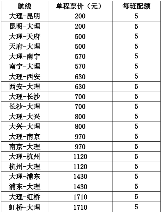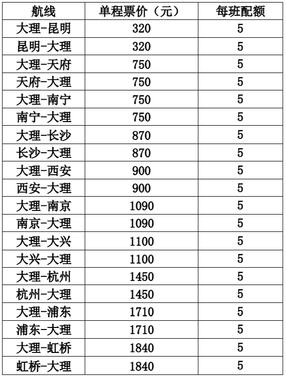 東方航空大理出港單程、往返程散客及團(tuán)隊(duì)適用。