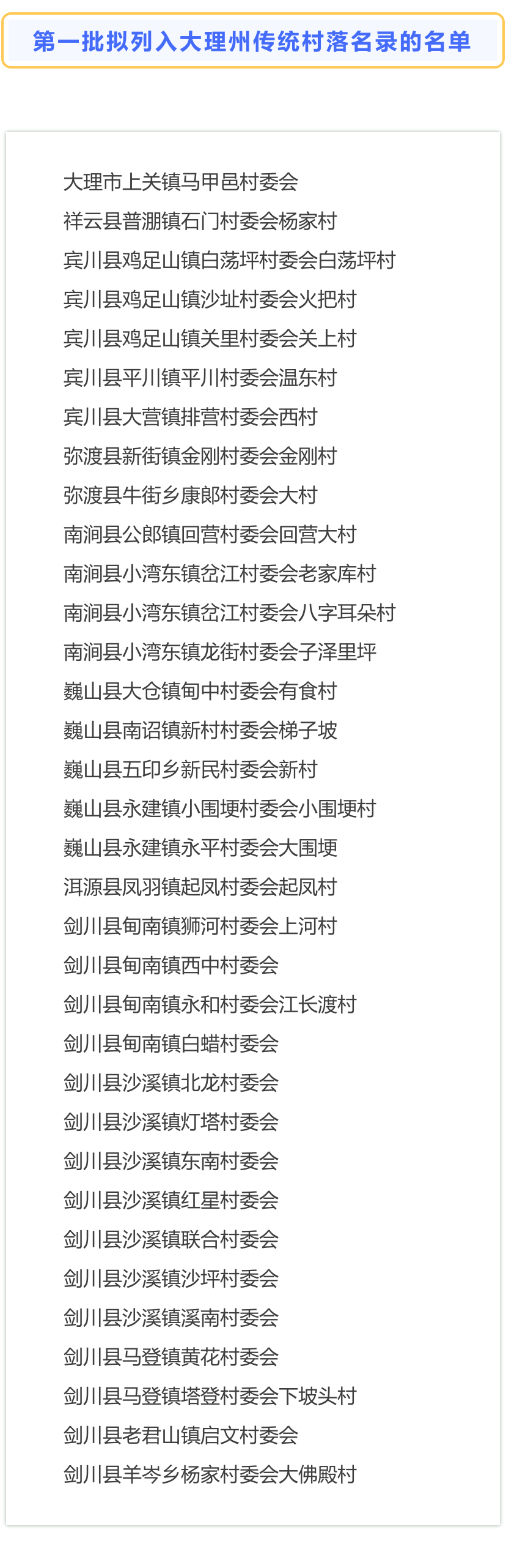 擬列入第一批大理州傳統(tǒng)村落名錄