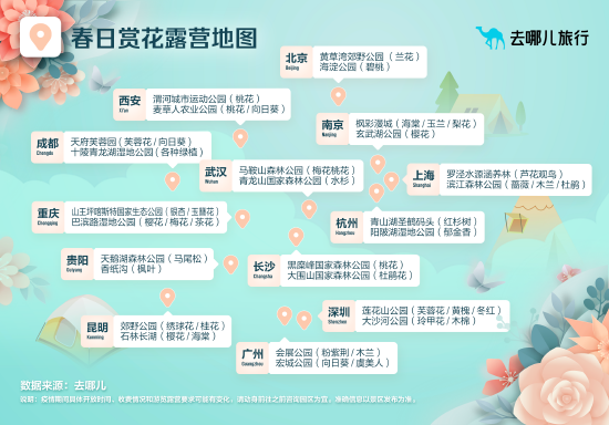去哪兒網(wǎng)顯示,“賞花”和“露營”占據(jù)3月以來游玩方式搜索量的前兩名。既能賞花又能搭帳篷的城市公園,是游客最常選擇的露營地點。