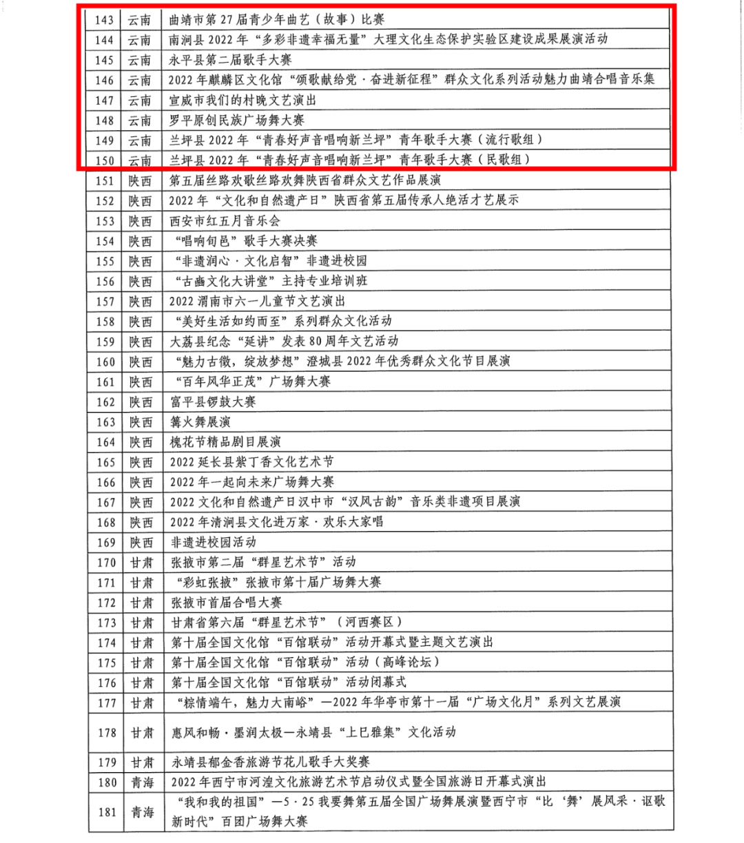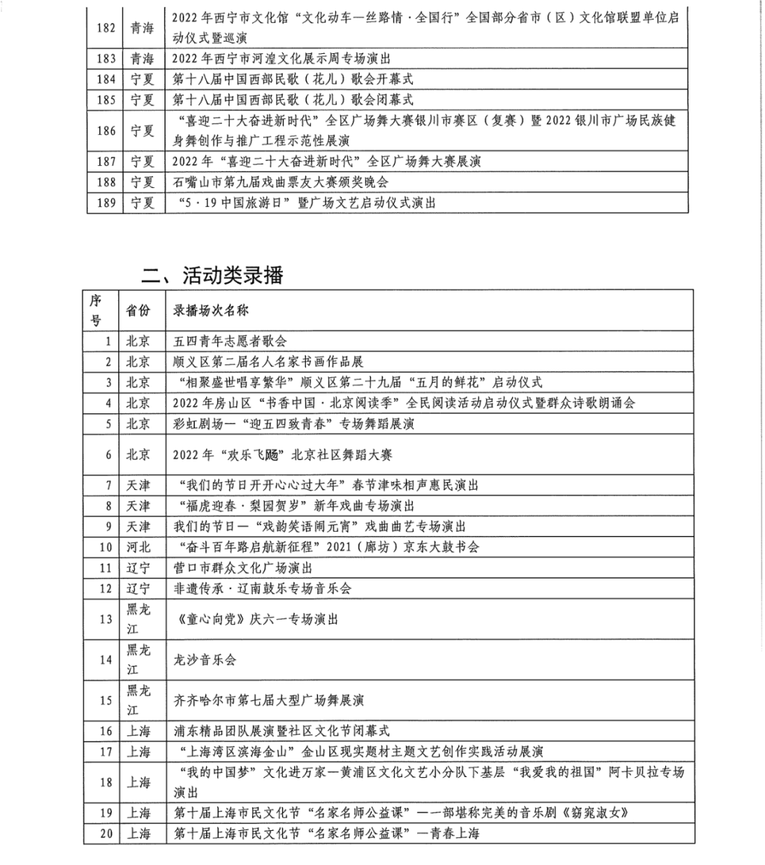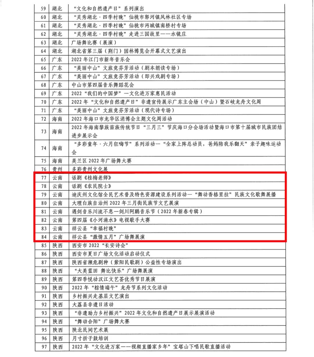 2022年第二季度國家公共文化云網(wǎng)絡(luò)直錄播入選名單新鮮出爐,云南省共有活動(dòng)類直錄播17場入選,快來一睹為快!