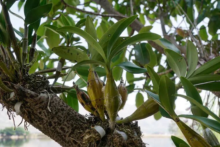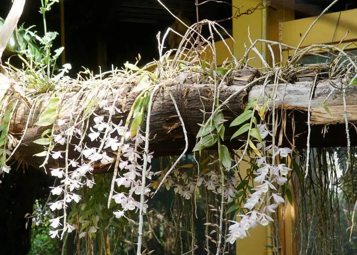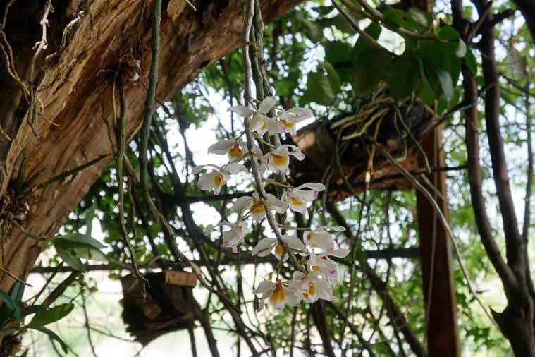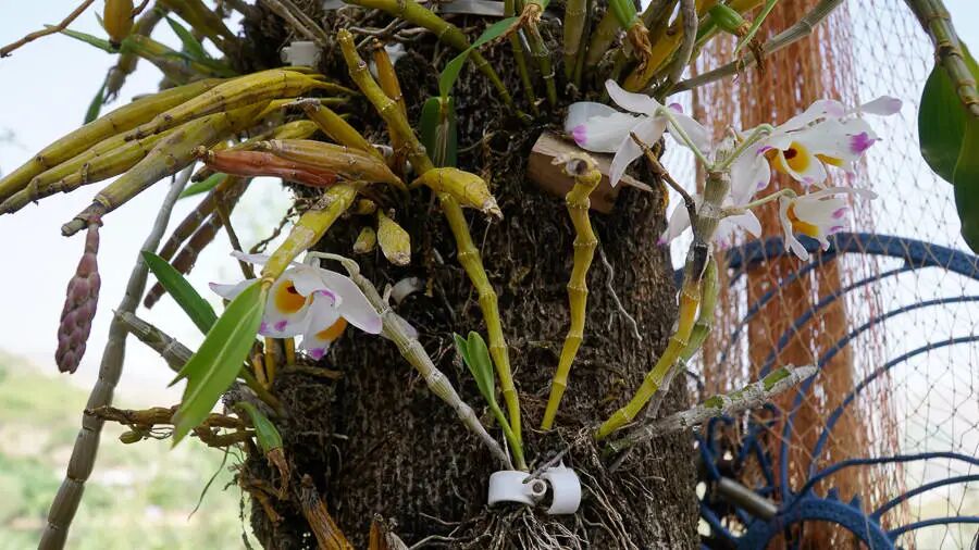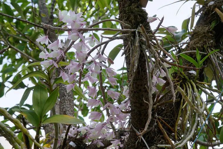 石斛還有一個(gè)獨(dú)特之處,便是石斛的種植不需要土壤,而是以碎木屑為主要植料栽種在樹(shù)干或木頭樁上。