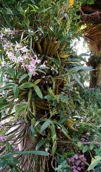 走進(jìn)賓居鎮(zhèn)大王廟游客接待中心,鋪天蓋地的各色花木映入眼簾,令人心曠神怡,其中,最為抓人眼球的便是正值花期的石斛花。暗紫的金釵熱烈奔放,淡紫的天宮恬淡優(yōu)雅,純白的鐵皮石斛潔白無(wú)瑕……一串串、一簇簇五彩繽紛的花朵或掛在高高的樹(shù)干上,或靜臥在盤(pán)虬的枯樹(shù)樁上,熱熱鬧鬧卻不聒噪,也不亂眼,在枝頭默默傾訴著它的詩(shī)情畫(huà)意。