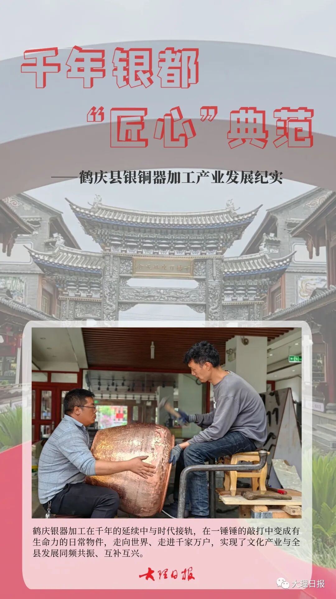今年年初,鶴慶銀器加工特色勞務(wù)品牌登上《人民日?qǐng)?bào)》,鶴慶銀銅器加工產(chǎn)業(yè)再次吸引了外界的關(guān)注。鶴慶銀器加工在千年的延續(xù)中與時(shí)代接軌,在一錘錘的敲打中變成有生命力的日常物件,走向世界、走進(jìn)千家萬(wàn)戶,實(shí)現(xiàn)了文化產(chǎn)業(yè)與全縣發(fā)展同頻共振、互補(bǔ)互興。