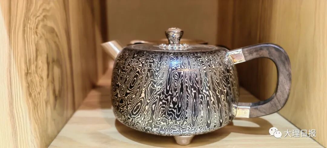 民間有句話:能打出一把銀壺的是大師傅,能完成“一張打”銀壺的就是大師?!袄钚“住便y壺創(chuàng)始人兼董事長(zhǎng)李福明就是這樣的大師。2011年,“李小白銀壺工作室”成功研制出中國(guó)第一把“一張打”銀壺,打破日本“一張打”銀壺百年來(lái)的技術(shù)封鎖。2014年,成功研發(fā)出中國(guó)第一把乳丁壺,打破了日本光南家族對(duì)乳丁壺工藝的壟斷,不斷推動(dòng)“中國(guó)銀壺”走向世界一流。在李福明等工藝大師的帶動(dòng)下,鶴慶縣人才輩出,鶴慶銀器鍛制技藝非遺傳承人達(dá)82人。
