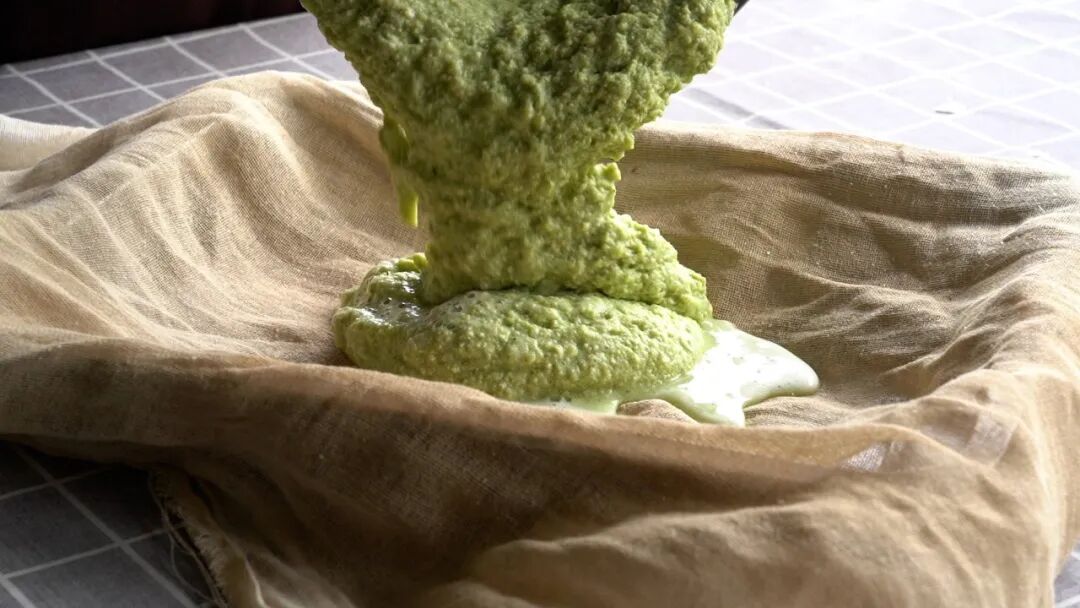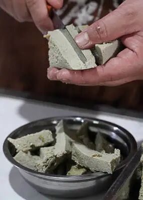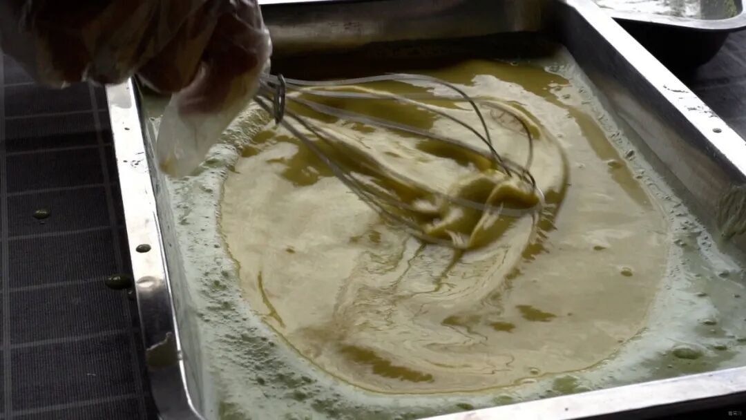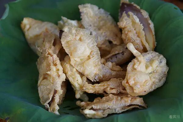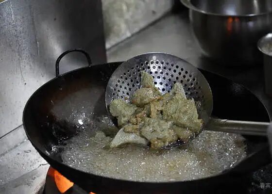 把新鮮荷葉的嫩芽,融入到黃豆里面,研磨打細(xì),通過(guò)過(guò)濾濾渣,做成豆腐漿,加雞蛋,攪拌均勻后,清蒸出來(lái),到最后下鍋油炸。