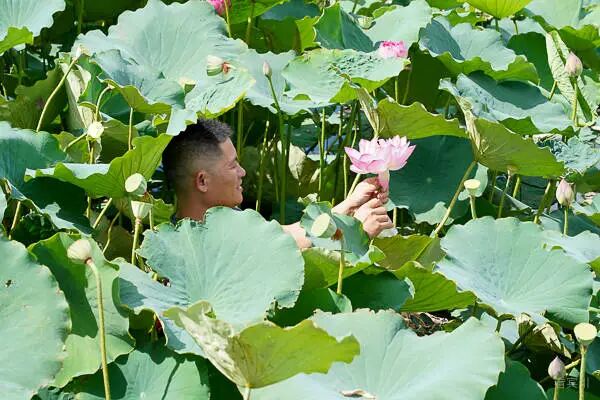 迎著中午的陣陣微風(fēng),蘇曉三帶著女兒蘇可來(lái)到荷塘采摘食材。他熟練的進(jìn)入荷塘,挑選著可做菜的蓮蓬、荷花、荷葉,與此同時(shí),女兒正在荷塘邊等待著爸爸“勝利”歸來(lái)。經(jīng)過(guò)一番辛勤的勞作后,父女倆滿(mǎn)載而歸。