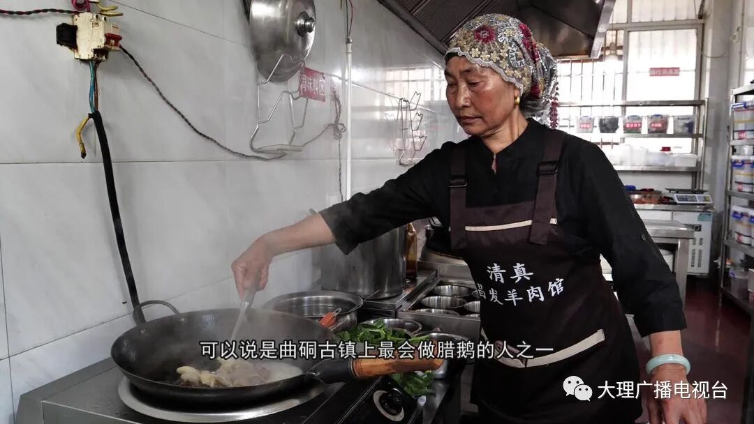 常永會今年62歲,可以說是曲硐古鎮(zhèn)上最會做臘鵝的人之一。她出生在永平縣北斗鄉(xiāng)黑埡口人,從小練就一手好廚藝。20歲嫁到曲硐后,跟婆婆學會了腌制臘鵝、烹調(diào)臘鵝的手藝。