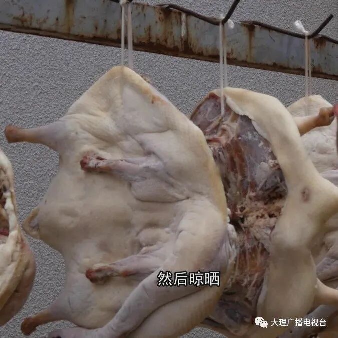在曲硐,農(nóng)家都有養(yǎng)鵝的習慣,多則幾十只,少則幾只。每到秋末冬初,選取6-10個月的健碩白鵝改為籠養(yǎng),用玉米面團填塞一月后,宰殺腌制入味半個月左右,然后晾曬,地道的臘鵝才算制作完成。