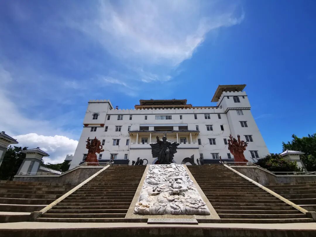南詔風(fēng)情島游覽第三站——南詔行宮,這是南詔國存在的證明,整座行宮以唐代建筑為基調(diào),融合了南詔、吐蕃的地方建筑風(fēng)格,所以南詔行宮的風(fēng)格屬于雜糅風(fēng)。