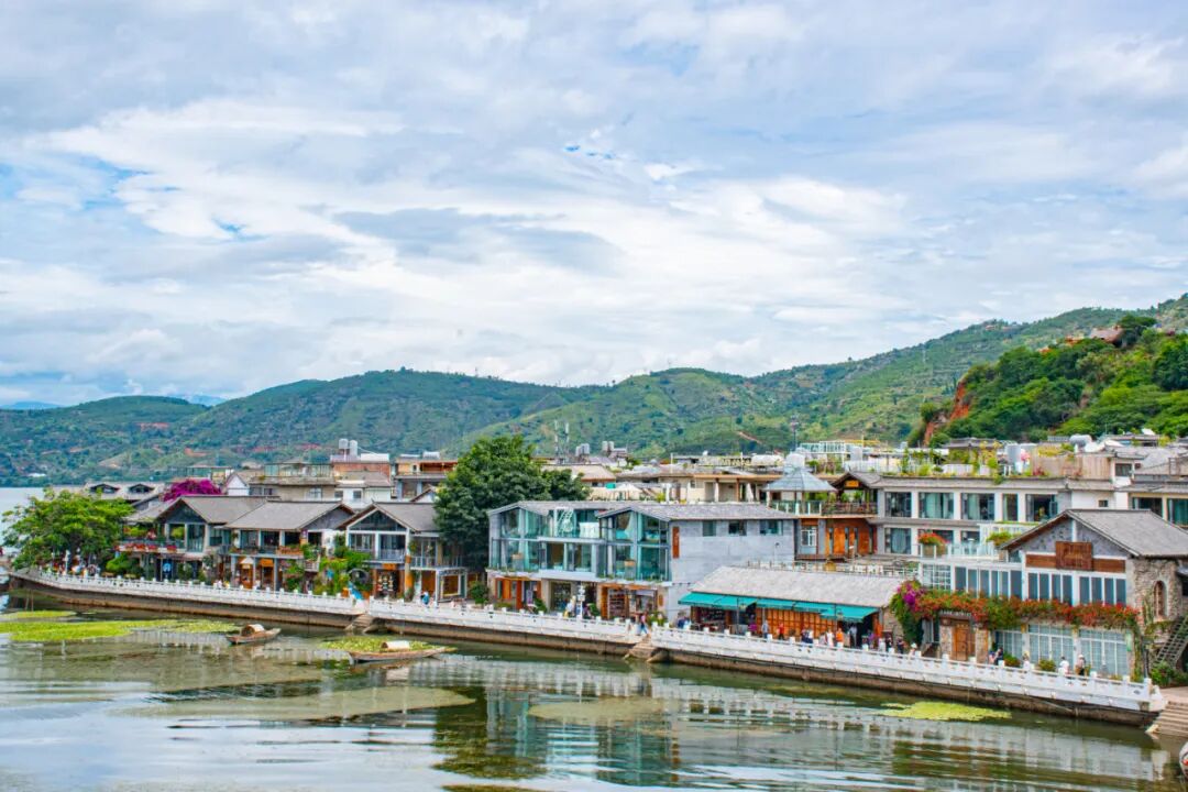遠(yuǎn)離了小普陀,朝著雙廊駛?cè)ィ迩f越來越密集,白族建筑越來越多,目的地——雙廊古鎮(zhèn)已經(jīng)近在咫尺,但不見南詔風(fēng)情島。