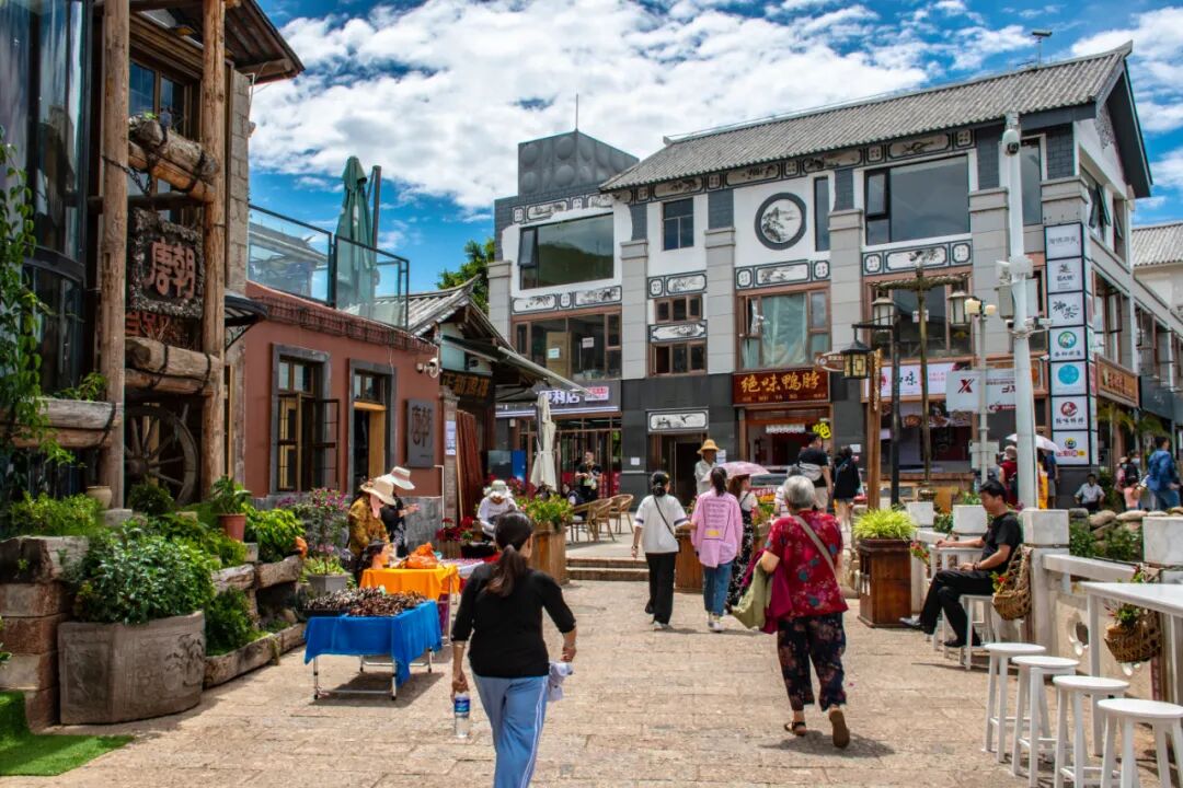 洱海邊繁華、熱鬧的青石街道上到處都是簇?fù)淼娜巳海腥嗽趹蛩?,有人在賞睡蓮;有人在拍照,古鎮(zhèn)不大,但確實(shí)熱鬧。