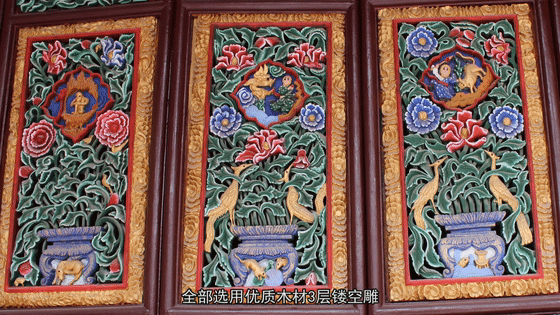 金光寺始建于公元1628年,現(xiàn)寺內(nèi)仍完整保留明代轉(zhuǎn)軸浮雕通花門28扇,全部選用優(yōu)質(zhì)木材3層鏤空雕,門上雕各種珍禽異獸,奇花異卉,以及許多眾口相傳的佛經(jīng)故事。其雕工精細(xì),刀法圓熟,構(gòu)思奇巧,栩栩傳神。