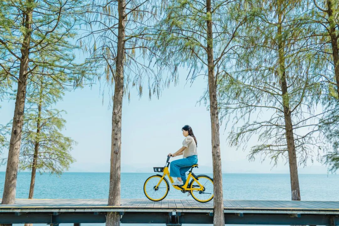 在這里騎騎車或者乘坐觀光車欣賞洱海風(fēng)光,吹吹海風(fēng),看看宛如藍(lán)玉的洱海,轉(zhuǎn)頭眺望遠(yuǎn)處的蒼山,龍龕碼頭水杉正紅,都可以帶著爸媽走走看看。