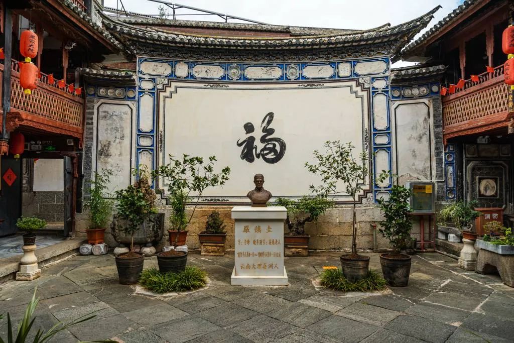 大院由“三坊一照壁,四合五天井”的的白族名居和小洋樓組成,保留了原始純粹的白族特色,漆紅的門窗、質(zhì)樸的石雕、翹角飛檐的建筑之美,都展現(xiàn)出這里的底蘊。