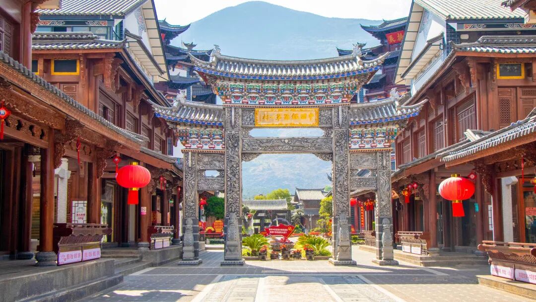 坐落在新華銀匠村中軸線上的銀牌坊,以其體現(xiàn)的精湛手作工藝和最大的用銀體量,成為鶴慶新華銀器小鎮(zhèn)的標(biāo)志性建筑之一,亦成為鶴慶旅游的新地標(biāo)。