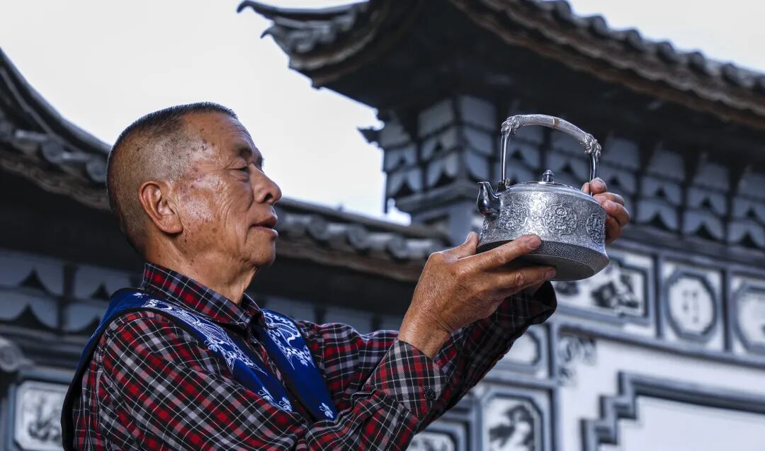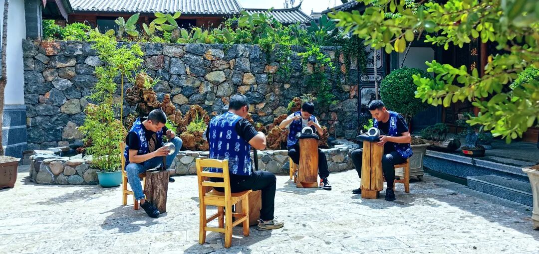 新華銀匠村注重把非遺傳承保護(hù)與文旅產(chǎn)業(yè)發(fā)展相結(jié)合,在提升銀器手工產(chǎn)品品質(zhì)的同時,開發(fā)各類非遺文創(chuàng)產(chǎn)品的同時,還在銀匠村內(nèi)“植入”銀器手工捶揲、鏨刻和白族手工造紙展示;在新華銀匠村、新華南邑村打造了特色餐廳、特色客棧、休閑文化小院、大師院、銀器工坊等5種類型的特色院落12院,有力提升鶴慶旅游非遺文化體驗(yàn)。