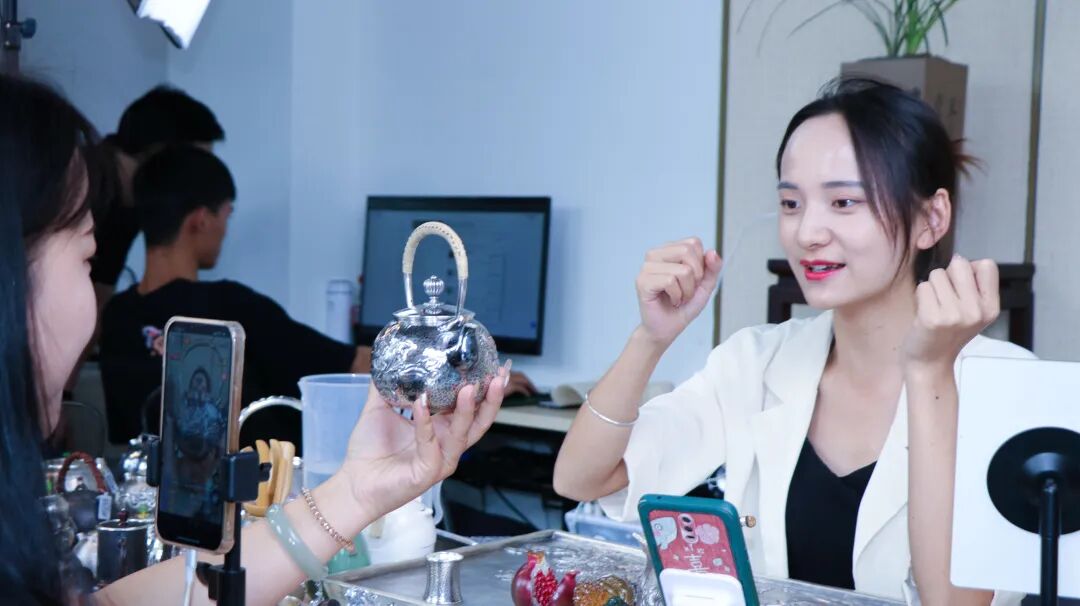 直播為文旅融合注入強(qiáng)勁動力。新華銀匠村引入云南銀器直播基地,依托電子商務(wù)進(jìn)農(nóng)村綜合示范項目,整合品控分揀、物流等資源資源,培養(yǎng)本地直播類人才、短視頻創(chuàng)作者500余人;引入省內(nèi)外直播運(yùn)營和短視頻創(chuàng)作團(tuán)隊10余家,開設(shè)網(wǎng)店超過300多家,為銀器、銅器、棉紙、刺繡等非遺產(chǎn)品拓寬銷售渠道。