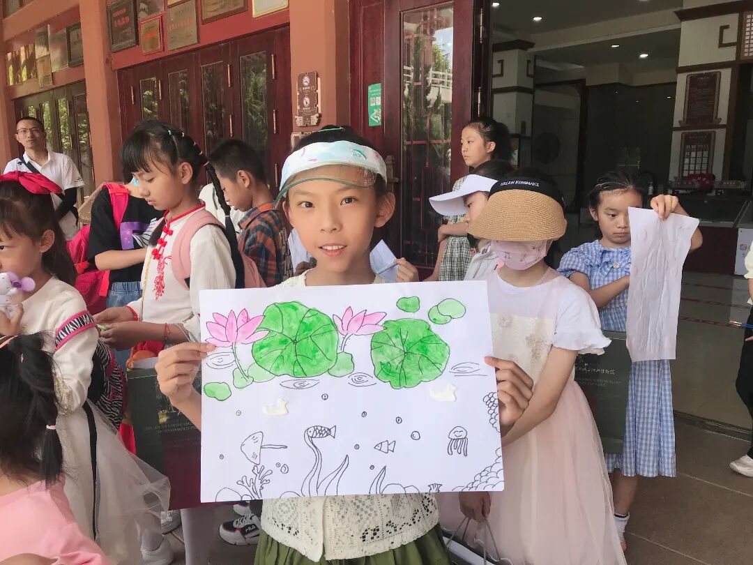 在社教活動室,孩子們將今天的所見所得用繪畫的方式記錄下來。在講解員和志愿者的指導(dǎo)下,他們開始了各自的創(chuàng)作,增強了實踐動手能力。最后,臨近中午,博物館入館參觀迎來高峰時期,同學(xué)們帶著“小記者采訪”任務(wù)去到博物館的每一個展廳采訪參觀觀眾,訓(xùn)練口才能力。豐富多彩的社教活動讓孩子們度過了富有意義、充實歡樂的一天。