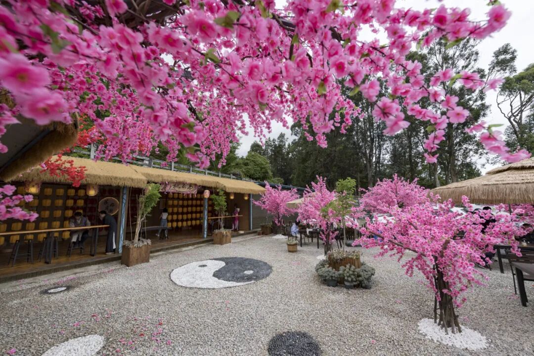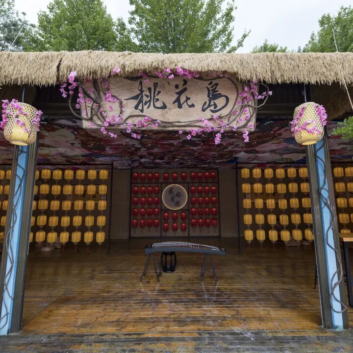 當(dāng)然,作為打卡點(diǎn),出大片必然是第一需求?!疤一◢u”作為專為拍照而生的打卡點(diǎn),我們從美學(xué)角度出發(fā),詳盡打造桃花造型及位置安排,同時(shí)加入各種充滿狹義之氣的道具,譬如古箏、古風(fēng)桌椅、燈籠墻等,同時(shí)也提供精致的茶飲點(diǎn)心,此些茶點(diǎn)既可飽腹亦可拍照打卡,實(shí)在一絕。
