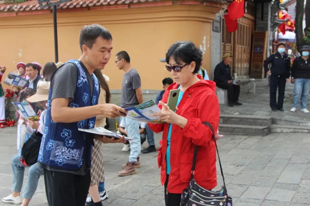 9月30日和10月1日兩天,縣文旅局還引導(dǎo)和組織我縣重點(diǎn)旅游企業(yè)和旅游志愿者到大理古城、喜洲、雙廊、洱海生態(tài)廊道等散客集中區(qū)域開展了多個(gè)場(chǎng)次線下旅游推薦活動(dòng),活動(dòng)的民族歌舞、非遺文化表演、互動(dòng)等環(huán)節(jié)吸引了大量外地游客駐足觀看,游客紛紛向志愿者咨詢了解洱源國(guó)慶節(jié)期間的旅游產(chǎn)品、價(jià)格和線路等信息。