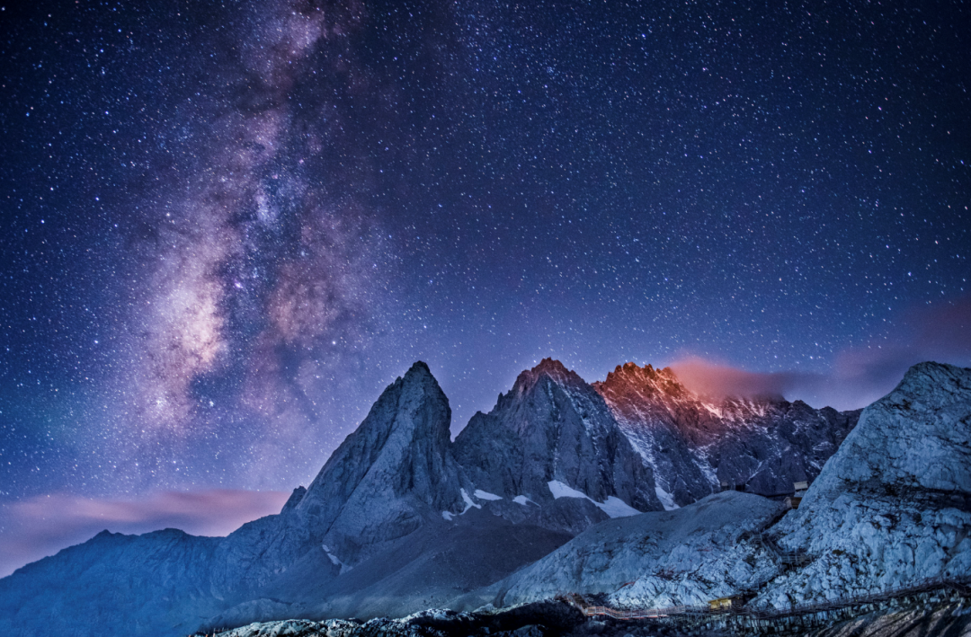(玉龍雪山上的星空 石磐 攝)