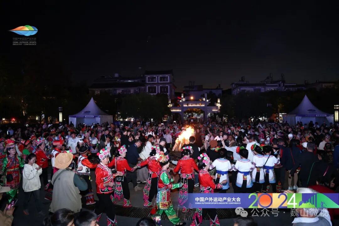 參賽選手和游客們還到南詔文化廣場(chǎng)體驗(yàn)“彩云之南等你來(lái)”夜間群眾文藝演出篝火晚會(huì)?;顒?dòng)現(xiàn)場(chǎng)氣氛熱烈,隨著篝火的熊熊燃起,人們踏著音樂(lè)的節(jié)拍,盡情狂歡,在體驗(yàn)國(guó)家級(jí)非物質(zhì)文化遺產(chǎn)彝族打歌魅力中放飛自我,盡情狂歡。
