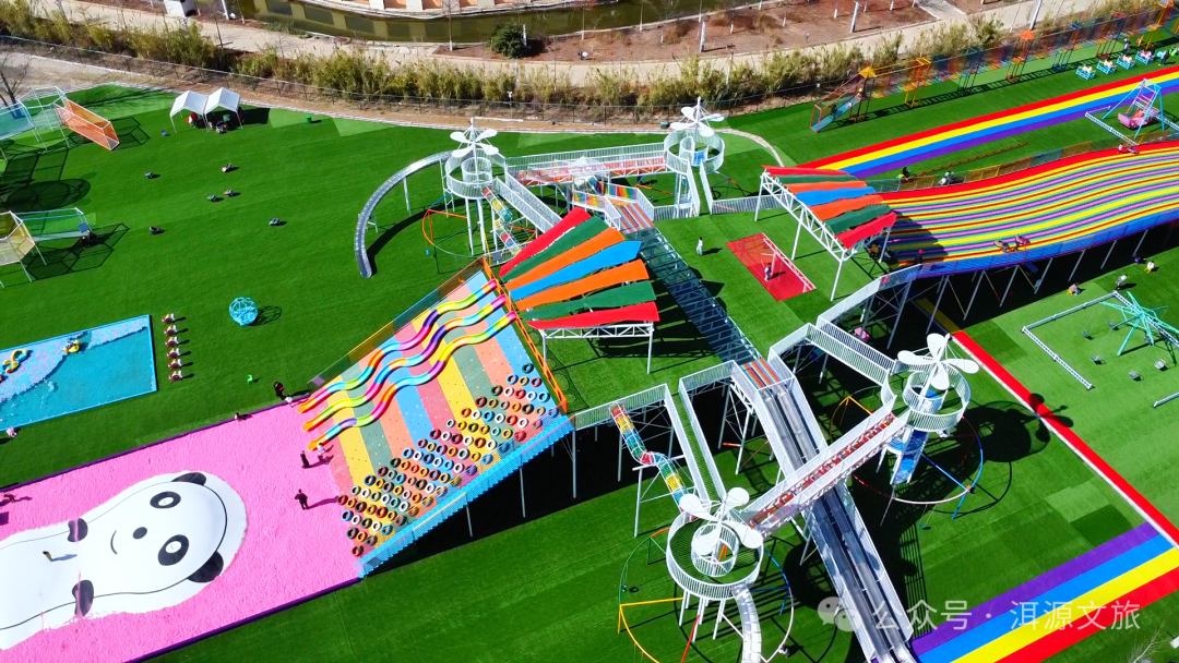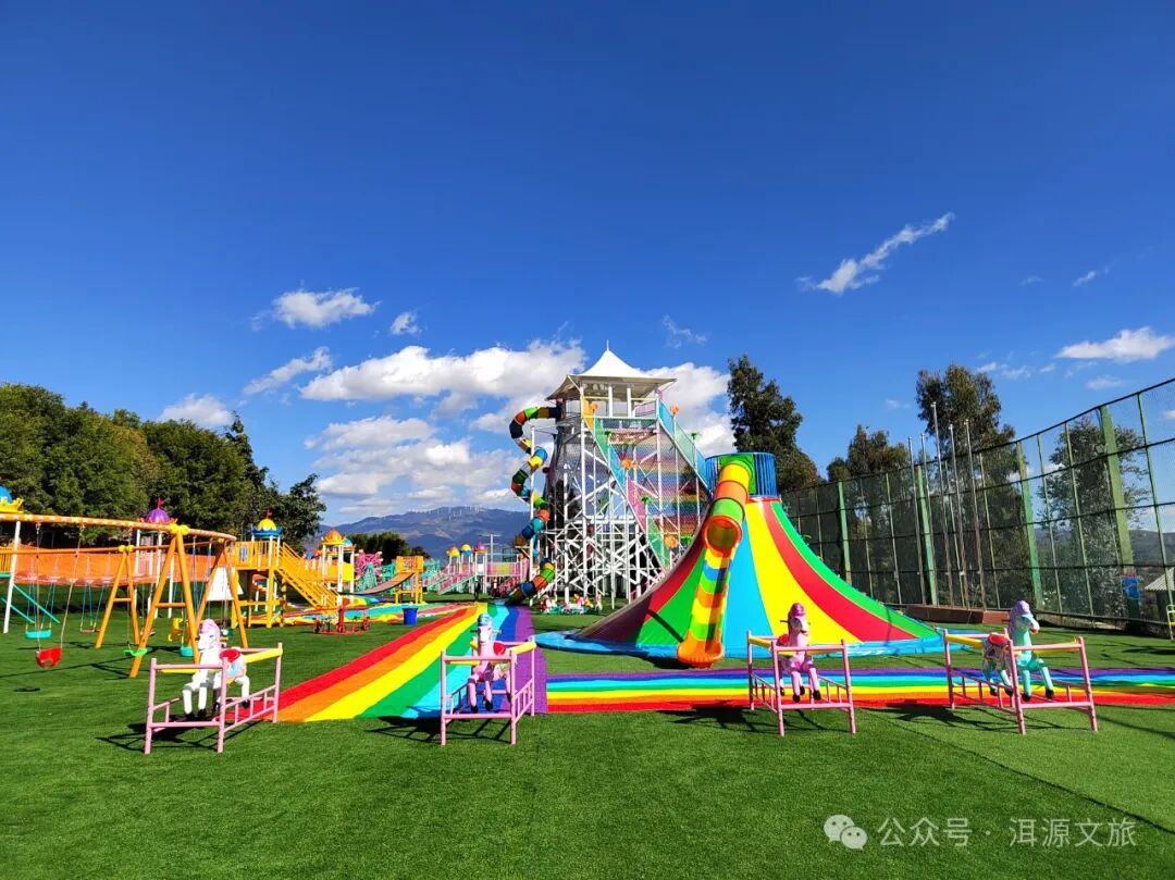 地?zé)釃鴼g樂世界,位于大理地?zé)釃鴥?nèi),設(shè)有彩虹滑道、蹦蹦床、攀巖、旋轉(zhuǎn)木馬、沙池等多項無動力游玩項目,滿足兒童和中青年的不同游玩需求。